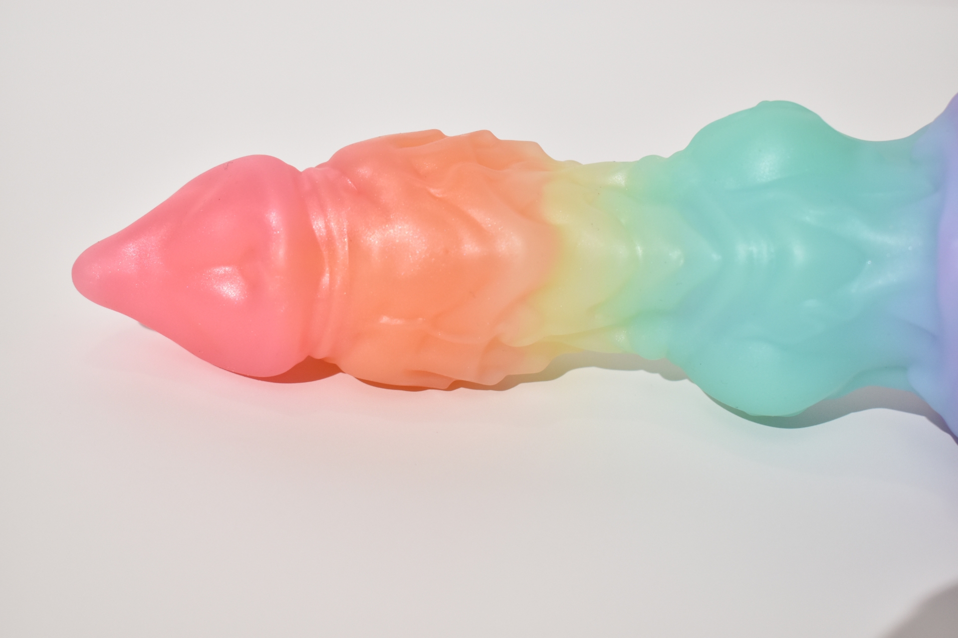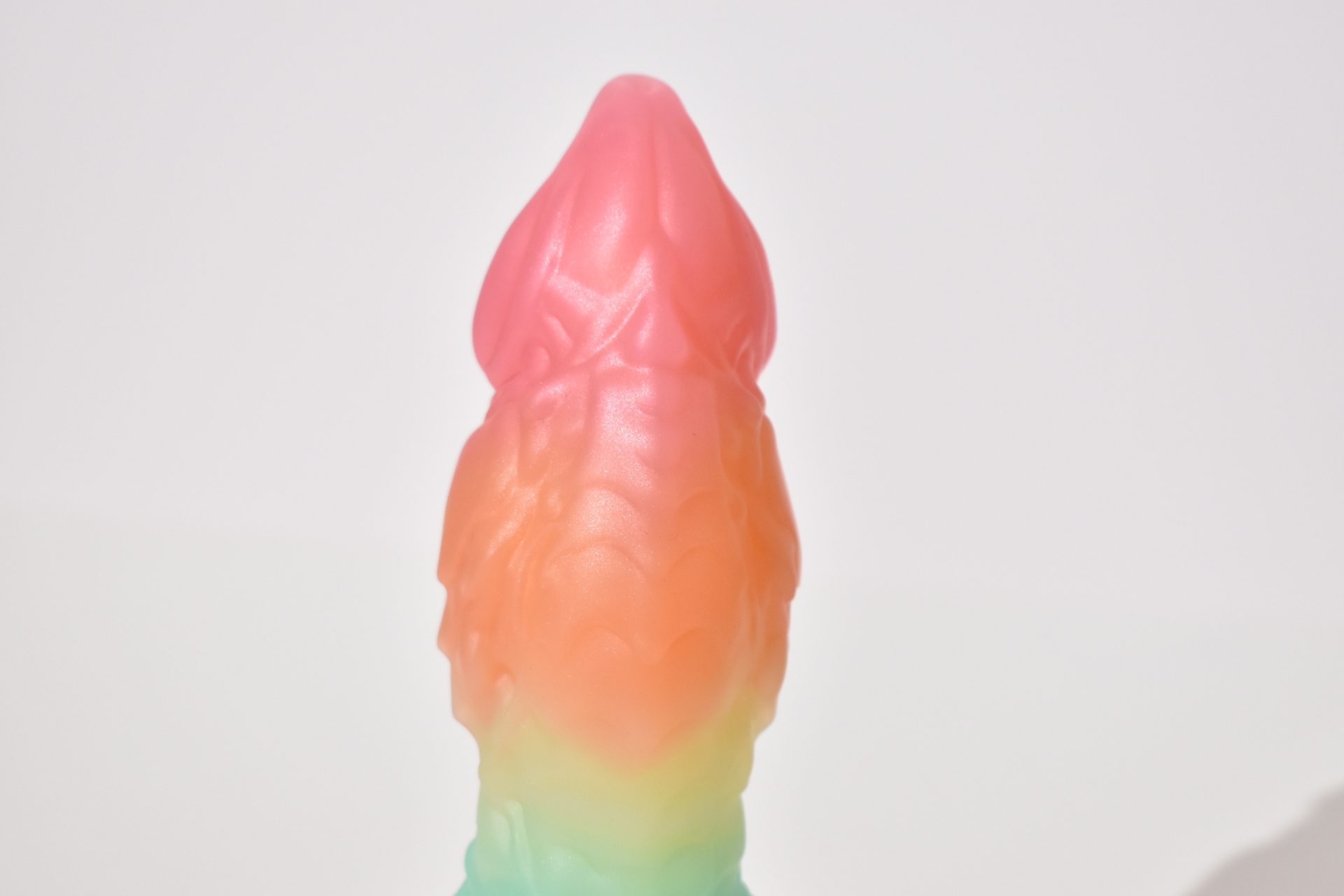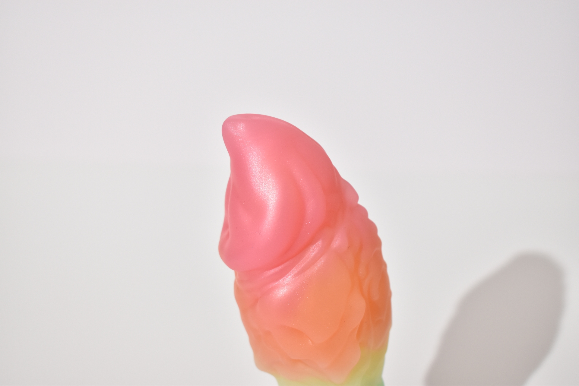 Beautiful coloring and meticulous attention to detail. The challenging girth delivers a deeply satisfying sense of fullness without feeling overwhelming or unmanageable. The pointed, hook-like head is perfect for clitoral stimulation and smooth, easy insertion.
