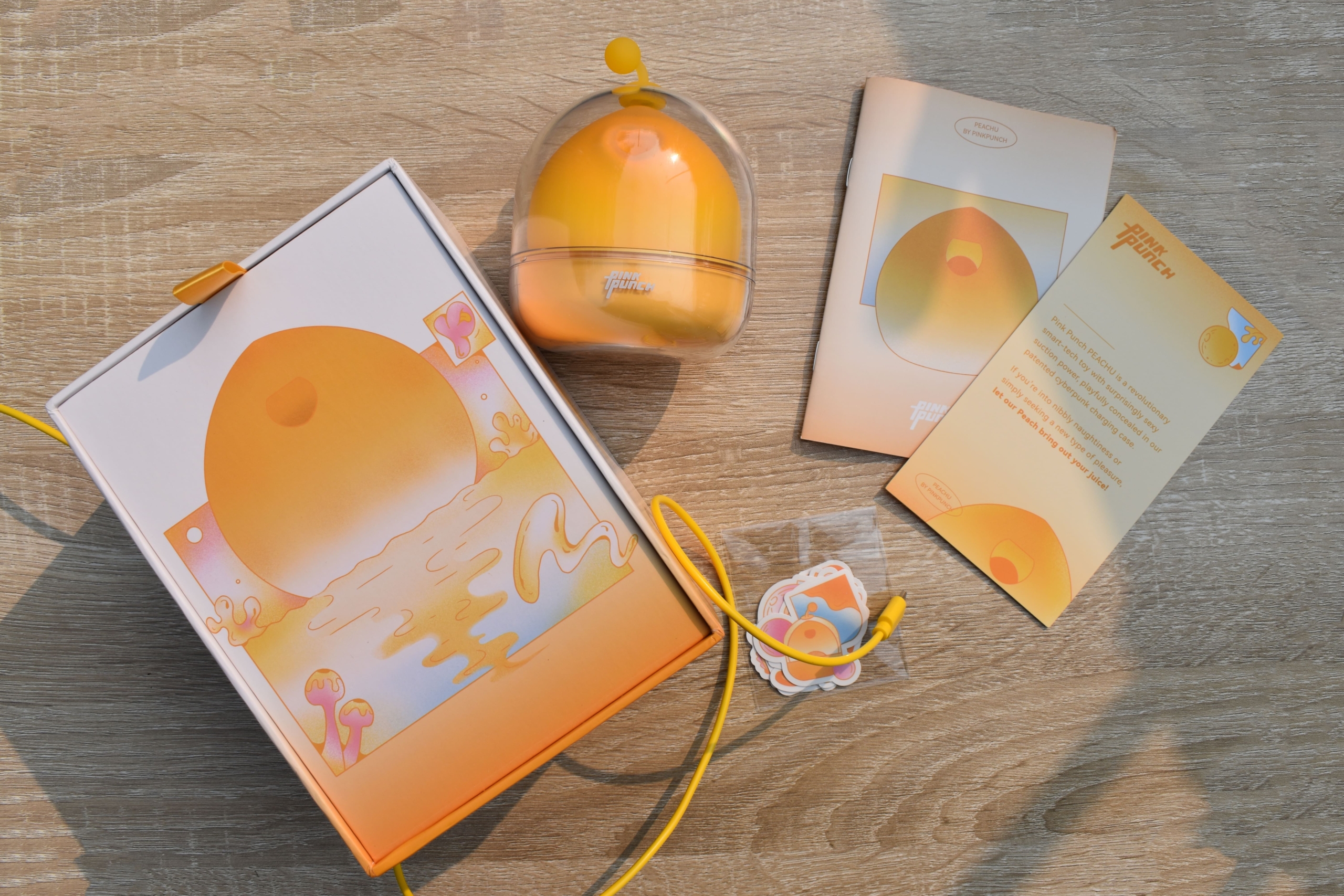 Peachu is a suction vibrator in the shape of (you guessed it) – peach. It’s bigger in size than an actual peach and it’s covered in a vibrant yellow – orange fade. Yet again, Pink Punch made their toy adorable.