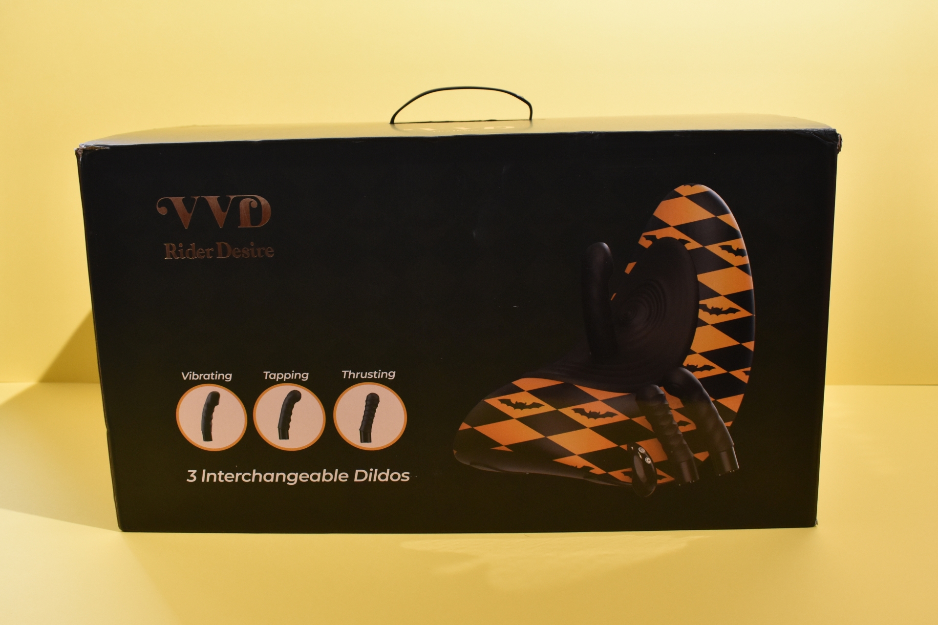 The toy I’m about to show you was made for this problem. The VVD Rider Desire – a riding sex machine with three interchangeable vibrators and clitoral stimulator.