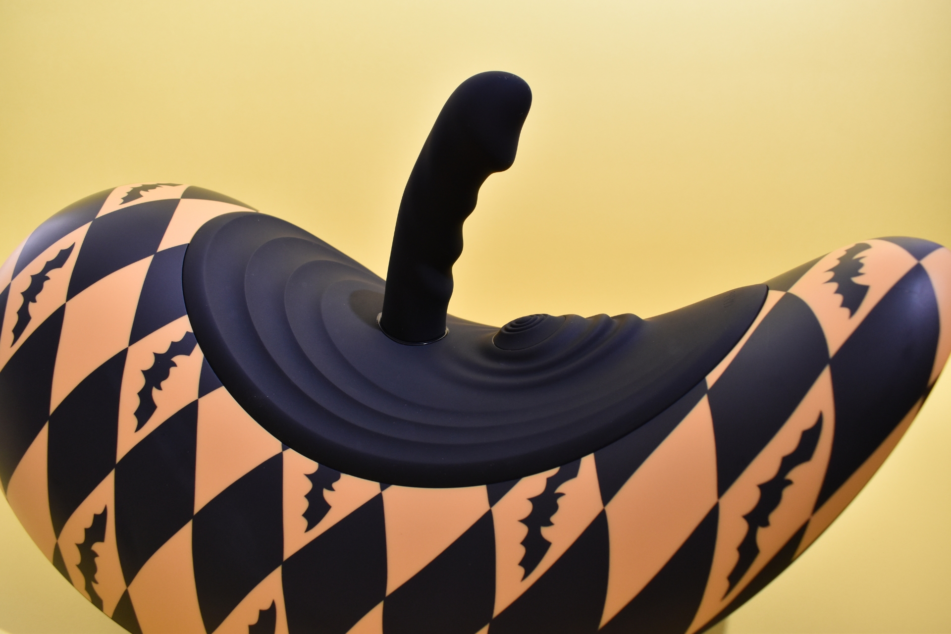 At the top sits a silicone pad that houses the clitoral stimulator and a magnetic holder for the dildo.